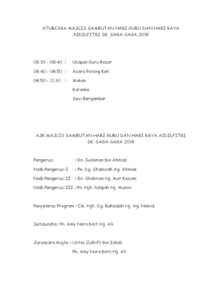 Aturcara Dan Ajk Majlis Sambutan Hari Guru Dan Hari Raya Pdf